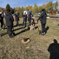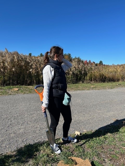 En parallèle de l’activité de plantation, un projet d’aménagement a été déployé le long de la piste cyclable : création d’une placette et mise en valeur par l’œuvre d’art publique Le Porteur de bon augure de Josiane Saucier. Conçu par les Services des parcs et espaces verts, de l’urbanisme durable et des projets spéciaux, puis réalisé par l’équipe de Parcs et espaces verts, cet espace convivial sera inauguré officiellement au printemps 2026.