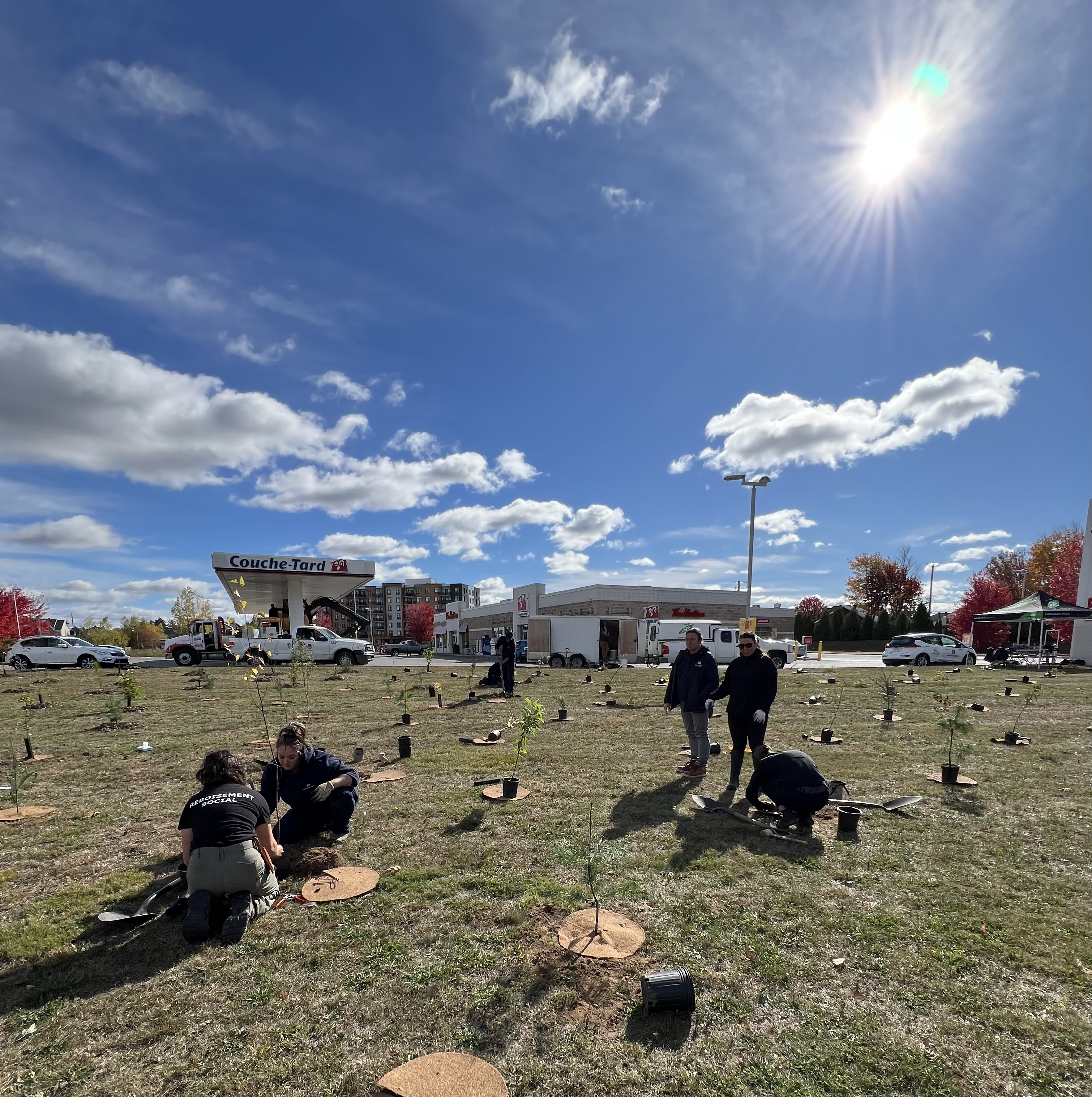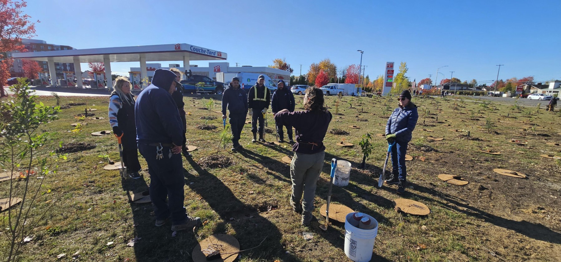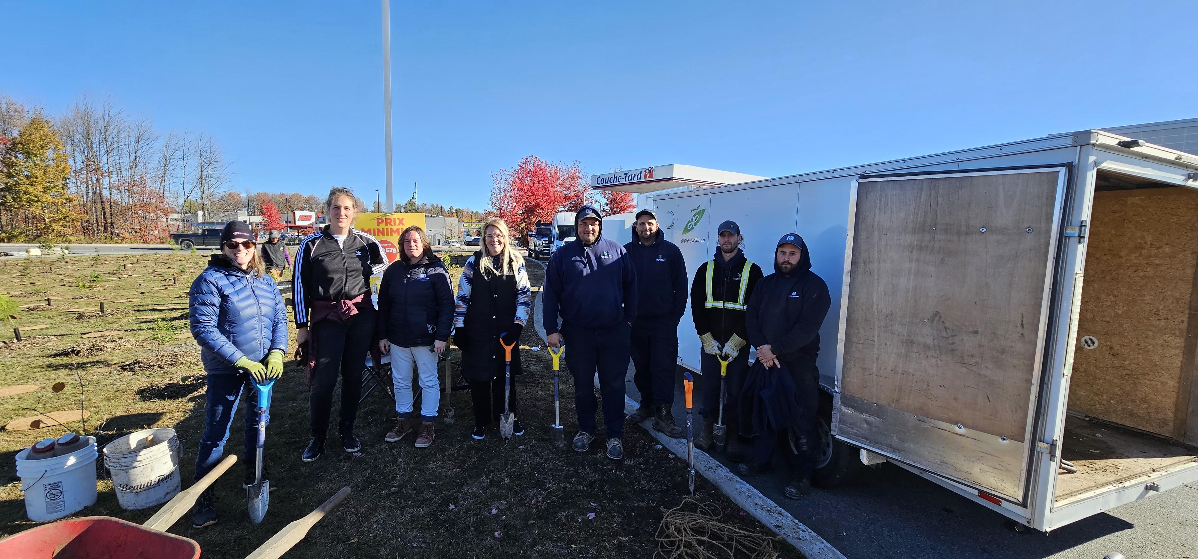 Les 15 et 16 octobre, sous un ciel ensoleillé, les équipes municipales, avec l’appui d’Arbre-Évolution ont planté 200 arbres et 400 arbustes d’espèces indigènes et comestibles à l’angle de l’avenue du Marché et de la rue Saint-Isidore.