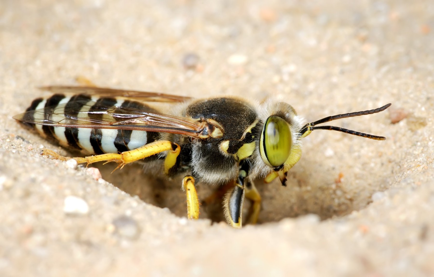 Malgré leur apparence intimidante, les guêpes fouisseuses sont généralement non agressives envers les humains. Elles préfèrent éviter les conflits et ne piquent que si elles se sentent directement menacées.